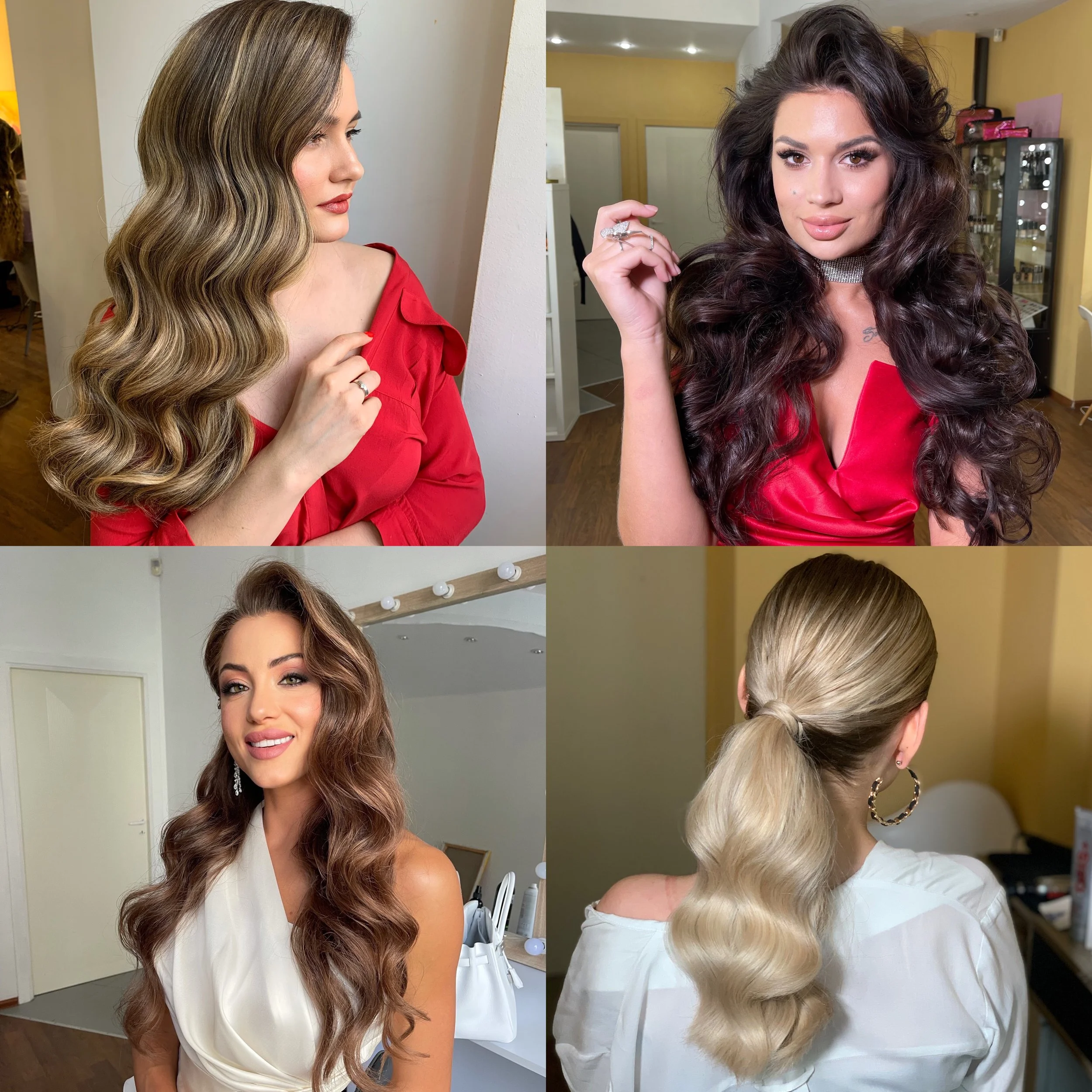 Any kind of hairstyle ( ponytails, high/low buns, sleek hairstyles, hollywood waves, beach waves, half up half down etc.)